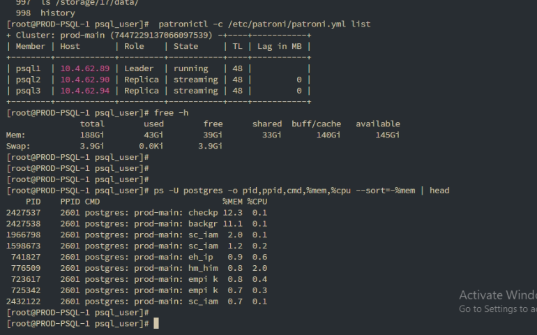 | Description | System Details OS: Rocky Linux release 9.4 (Blue Onyx) PostgreSQL version: 17.2 Hardware: 3-node HA cluster, each node with 148GB RAM Environment: Production PostgreSQL database server We’ve observed that on our PostgreSQL production servers running Rocky Linux 9.4, system memory allocation appears to plateau around 50–60% of the total available RAM (approximately 70–80GB out of 148GB). Despite low I/O pressure and no OOM events, neither the OS nor PostgreSQL seems to allocate or utilize the remaining available memory. The behavior is consistent across all three nodes in the HA cluster. We’d like to confirm whether this is: expected behavior under the current Linux memory management model, a configuration issue with PostgreSQL memory settings, or a potential kernel-level allocation anomaly specific to Rocky Linux 9.4. | ||||