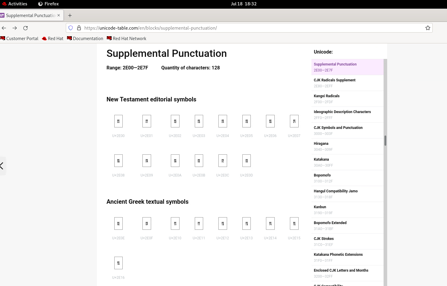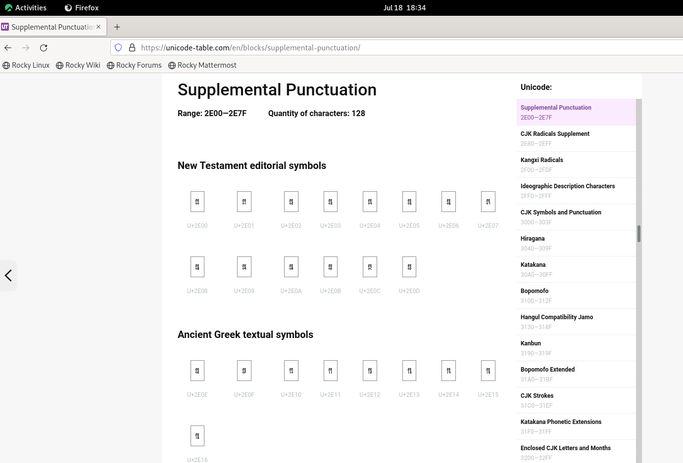 | Steps To Reproduce | - Install a Graphical Server or Workstation installation - Open the browser and visit the page https://unicode-table.com/en/blocks/supplemental-punctuation - You will see many placeholder characters | ||||