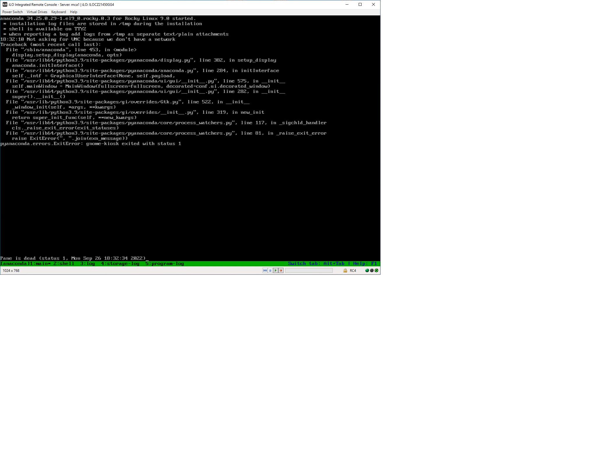 Descriptionrocky linux 9 installation stop with errors on anaconda screen when installing on hp proliant dl380g7.