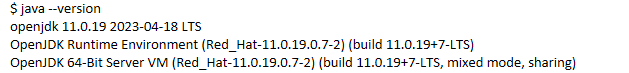 previous known working version java-11-openjdk-headless-1:11.0.19.0.7-4.el9.x86_6 ``` < t:2023-07-22 05:32:34,731 f:base.py l:228 c:RemoteLibSSH2CmdRunner p:DEBUG > Installing: < t:2023-07-22 05:32:34,731 f:base.py l:228 c:RemoteLibSSH2CmdRunner p:DEBUG > java-11-openjdk-headless x86_64 1:11.0.19.0.7-4.el9 appstream 40 M < t:2023-07-22 05:32:34,731 f:base.py l:228 c:RemoteLibSSH2CmdRunner p:DEBUG > Installing dependencies: < t:2023-07-22 05:32:34,731 f:base.py l:228 c:RemoteLibSSH2CmdRunner p:DEBUG > alsa-lib x86_64 1.2.8-3.el9 appstream 498 k < t:2023-07-22 05:32:34,731 f:base.py l:228 c:RemoteLibSSH2CmdRunner p:DEBUG > avahi-libs x86_64 0.8-12.el9_2.1 baseos 66 k < t:2023-07-22 05:32:34,731 f:base.py l:228 c:RemoteLibSSH2CmdRunner p:DEBUG > copy-jdk-configs noarch 4.0-3.el9 appstream 27 k < t:2023-07-22 05:32:34,731 f:base.py l:228 c:RemoteLibSSH2CmdRunner p:DEBUG > cups-libs x86_64 1:2.3.3op2-16.el9 baseos 264 k < t:2023-07-22 05:32:34,731 f:base.py l:228 c:RemoteLibSSH2CmdRunner p:DEBUG > javapackages-filesystem noarch 6.0.0-4.el9 appstream 11 k < t:2023-07-22 05:32:34,731 f:base.py l:228 c:RemoteLibSSH2CmdRunner p:DEBUG > lksctp-tools x86_64 1.0.19-2.el9 baseos 90 k < t:2023-07-22 05:32:34,731 f:base.py l:228 c:RemoteLibSSH2CmdRunner p:DEBUG > lua x86_64 5.4.4-3.el9 appstream 187 k < t:2023-07-22 05:32:34,731 f:base.py l:228 c:RemoteLibSSH2CmdRunner p:DEBUG > lua-posix x86_64 35.0-8.el9 appstream 131 k < t:2023-07-22 05:32:34,731 f:base.py l:228 c:RemoteLibSSH2CmdRunner p:DEBUG > tzdata-java noarch 2023c-1.el9 appstream 149 k ``` |