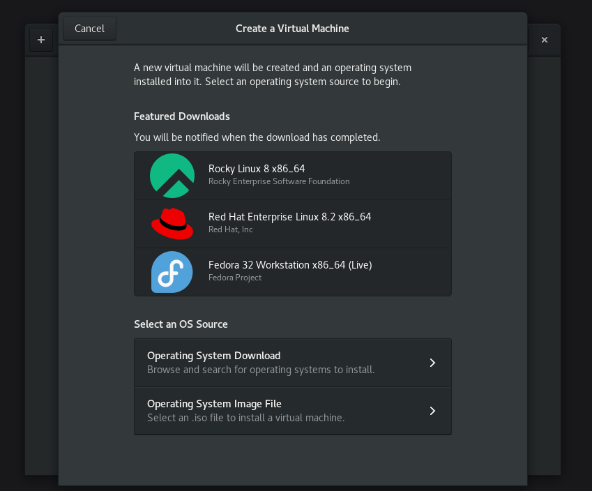 | Additional Information | Patch 1: ( fixes crash ) index a41f28bd..ecfb6d2f 100644 --- a/src/util-app.vala +++ b/src/util-app.vala @@ -188,9 +188,13 @@ public async GLib.List<Osinfo.Media>? get_recommended_downloads () { var os_id = iter->get_content (); try { var os = yield os_db.get_os_by_id (os_id); - var media = os.get_media_list ().get_nth (0) as Osinfo.Media; + var media_list = os.get_media_list (); + if (media_list == null || media_list.get_length () == 0) + continue; - list.append (media); + var media = media_list.get_nth (0) as Osinfo.Media; + if (media.url != null || os_id.has_prefix ("http://redhat.com")) + list.append (media); } catch (OSDatabaseError error) { debug ("Failed to find OS with id: '%s': %s", os_id, error.message); } Patch 2: (to make rocklylinux appear in the Recommeded OS list - refer attached screenshot) --- a/data/osinfo/meson.build +++ b/data/osinfo/meson.build @@ -13,6 +13,7 @@ osinfo_db = [ ['rhel-6.0.xml', 'gnome-boxes/osinfo/os/redhat.com'], ['rhel-7.0.xml', 'gnome-boxes/osinfo/os/redhat.com'], ['rhel-8.0.xml', 'gnome-boxes/osinfo/os/redhat.com'], + ['rocky-8.xml', 'gnome-boxes/osinfo/os/rockylinux.org'], ['silverblue-28.xml', 'gnome-boxes/osinfo/os/fedoraproject.org'] ] diff --git a/data/recommended-downloads.xml b/data/recommended-downloads.xml index 65f49e6a..025e1a38 100644 --- a/data/recommended-downloads.xml +++ b/data/recommended-downloads.xml @@ -9,6 +9,7 @@ available. --> <list> + <os_id>http://rockylinux.org/rocky/8</os_id> <os_id>http://redhat.com/rhel/8.2</os_id> <os_id>http://fedoraproject.org/fedora/32</os_id> <os_id>http://fedoraproject.org/silverblue/32</os_id> | ||||