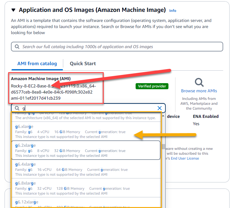 | Description | the new ec2 instances g6. are greyed out and not available within AWS console. Can these be added? Here is a link to the document explaining how to make these instances available on the Rocky 8 AMI https://docs.aws.amazon.com/marketplace/latest/userguide/ami-single-ami-products.html#single-ami-adding-instance-types | ||||